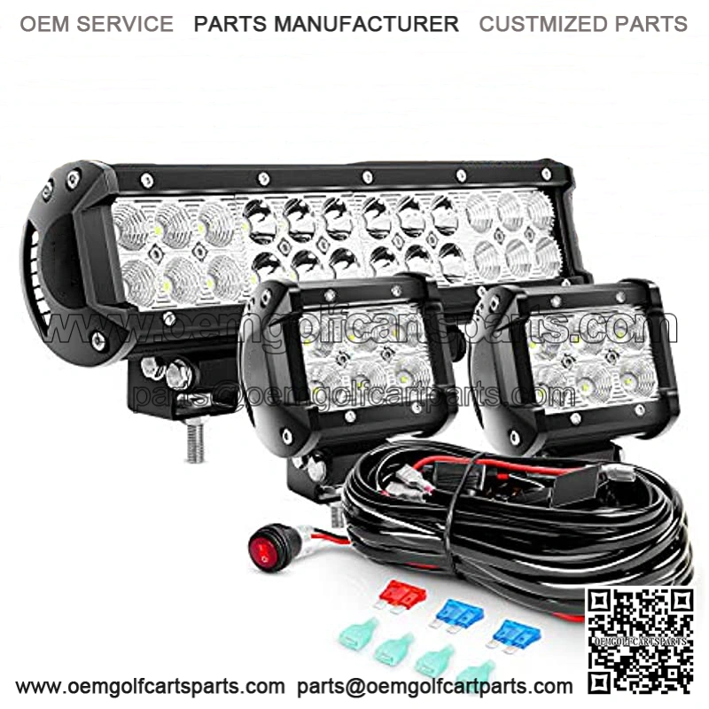 PACKAGE INCLUDE: 1PC 72W Combo LED Light Bar, 2PCS 18W Flood LED Light Bars and 1PC Wiring Harness Kit